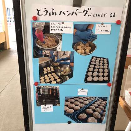 12/3の給食は「とうふハンバーグ、カリフラワーのスープに、スライスチーズ、黒糖パン、牛乳」でした。