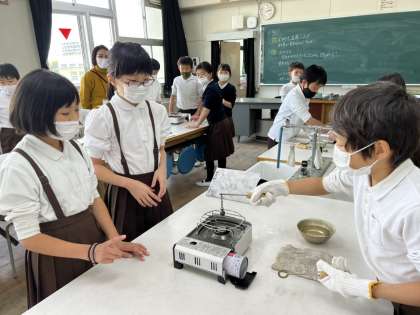 初めてガスコンロを使って金属の体積がどう変化するのかを実験しました。