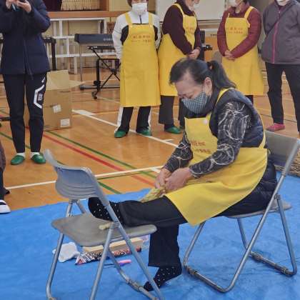 お正月に飾るしめ縄(注連縄)作りの実演を見せていただく