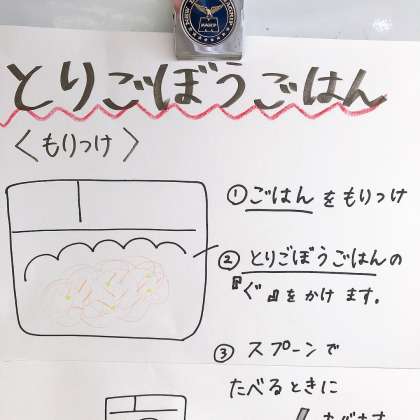2/24の給食は「とりごぼうごはん、みそしる、やきれんこん、牛乳でした。
