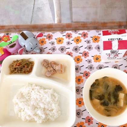 3/3の給食は「けい肉のしょうゆマヨネーズ焼き、みそしる、きんぴらごぼう、牛乳」でした。
