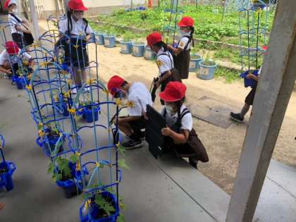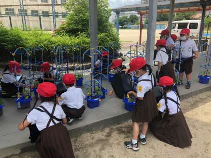 今日は、タブレットを使って、アサガオの成長の様子を写真にとりました!