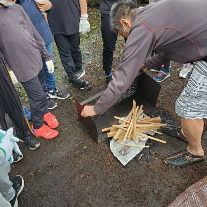 かまどの火の起こし方を教わります