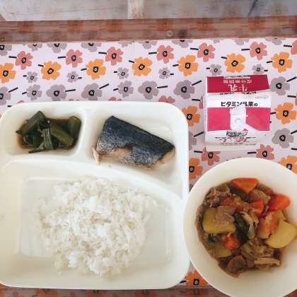 9/8の給食は「さごしの塩焼き、ぶた肉とじゃがいものにもの、オクラのいためもの、オクラのいためもの、ごはん、牛乳」でした。