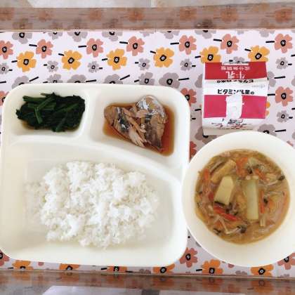 11/29の給食は「なまりぶしのしょうがに、じゃがいものみそしる、ほうれんそうのおひたし、ごはん、牛乳」でした。