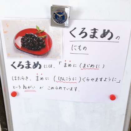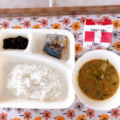 1/20の給食は「さごしのしょうゆだれかけ、みそ汁、黒豆の煮もの、ごはん、牛乳」でした。