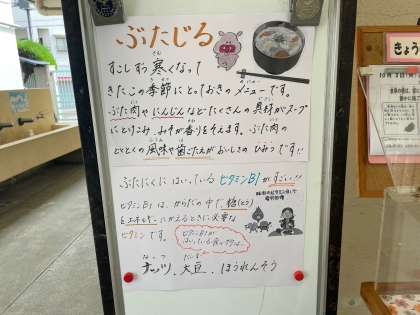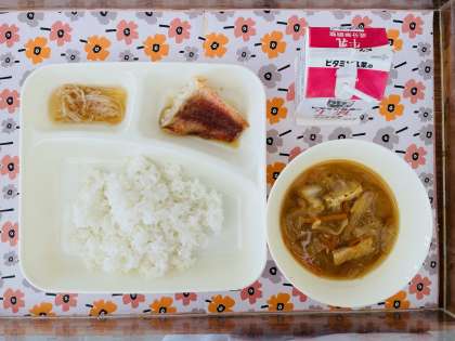 10/3の給食は「あかうおのしょうゆだれかけ、ぶたじる、もやしのゆずのかあえ、ごはん、牛乳」でした。