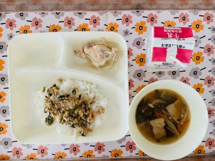 10/13の給食は「けいにくのゆずしおやき、ソーキ汁、ツナだいずそぼろ、ごはん、牛乳」でした。