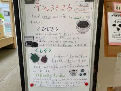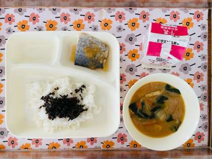 10/25の給食は「さごしのみぞれかけ、みそ汁、ぎゅうひじきそぼろ、ごはん、牛乳」でした。