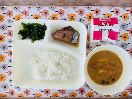 11/9の給食は「なまりぶしのしょうがに、なめこのみそ汁、ほうれん草のごまあえ、ごはん、牛乳」でした。
