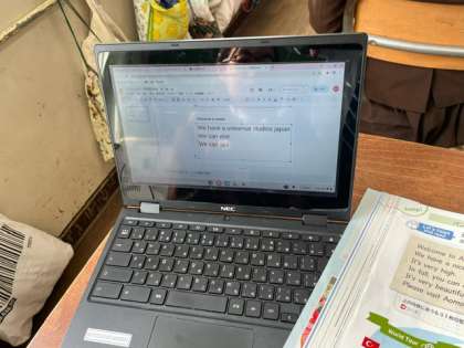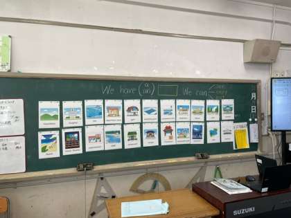 We have...という文を使って自分たちの町にあるものを紹介するパンフレット作りをしました。