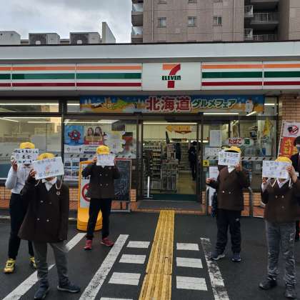 登下校の子どもたちを見守ってくださる店長さんのご厚意で