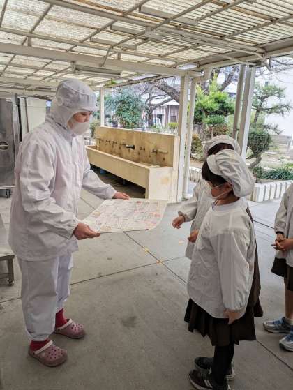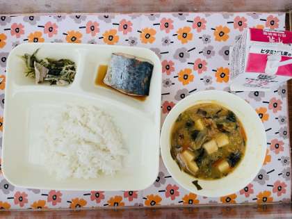 1/31の給食は「さごしのしょうゆだれかけ、豆腐のみそ汁、みずなの煮びたし、ごはん、牛乳」でした。