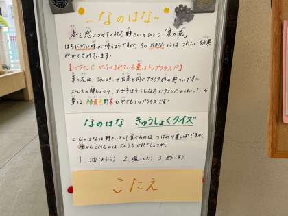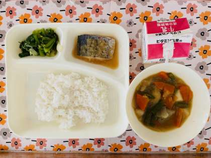 3/8の給食は「さごしのおろしじょうゆかけ、さといもと野菜のふくめ煮、なのはなのおひたし、ごはん、牛乳」でした。
