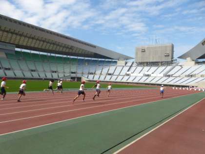11月6日(金)好天に恵まれ、暑いぐらいの一日になりました。長居陸上競技場・球技場で6年生による、スポーツ交歓会が行われました。午前中は、サッカーやドッジボール、長なわ跳び、午後は、100メートル走や400メートルリレーを行いました。世界大会が行われるような立派な会場でした。