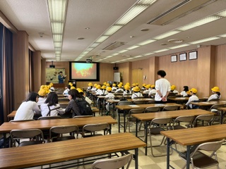 はじめに大会議室で写真や動画を使って説明をしてもらいました。たくさんのことをしっかり見て学んで帰ります。