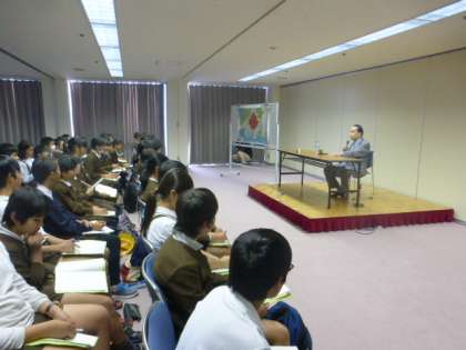 国際会議場の部屋で、語り部さんのお話を伺いました。