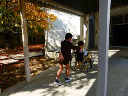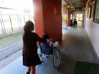 11月20日(金)今日は暖かくよいお天気になりました。3年生は、校内で車いす体験をしました。