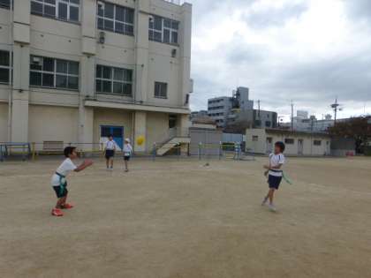 11月24日(火)11月も下旬になり、少しずつ冬が近づいてきました。5年生は、新しくそろえたラグビー型のボールとタグをつかって、体育の時間にタグラグビーをしました。