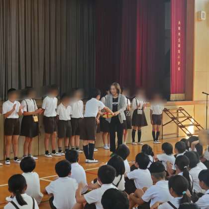児童会代表から直接手渡す贈呈式
