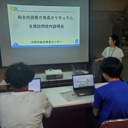 大阪市教育委員会が独自に開発した「総合的読解力育成カリキュラム」について、指導主事先生が来校して直接、説明と指導をいただきました