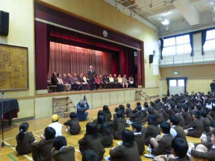 12月3日(木)今朝はあいにくの雨になりました。ふだん子どもたちのために見守り活動や鳥の世話をしてくださっている地域の方々に感謝の気持ちを伝える集会を行いました。ご出席いただいた地域の皆様方、ありがとうございました。