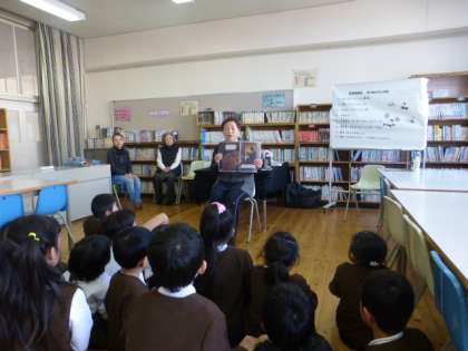 放課後に図書館開放を行いました。「音羽っこ」の方々にお越しいただいて、読み聞かせ「ぞうさん劇場」を開いていただきました。