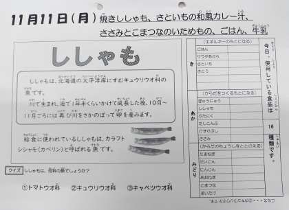 今日の焼きししゃもは、年1回に登場の献立です!