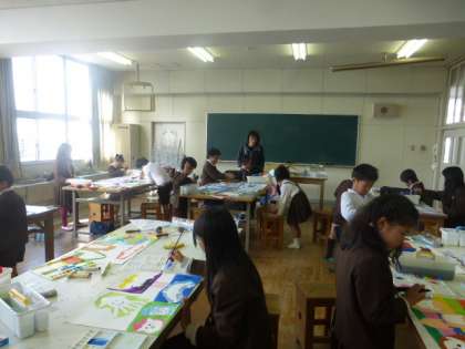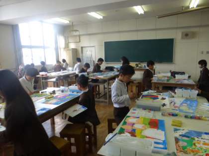 12月22日(火)今日は冬至です。よいお天気で、暖かい冬至となりました。2年生は、図工室で「写してみつけて」という題材で、絵を描いていました。