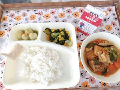 今日の献立は児童が考えた献立です、たくさん食べてほしいです。