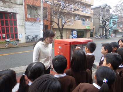 12月24日(木)2学期もいよいよ残すところ、あと2日となりました。今朝も暖かい朝になりました。1年生は、生活科の学習で年賀状を書きました。みんなで学校の近くのポストに、年賀状を入れにいきました。