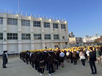 最後の運動場での児童朝会 12/2