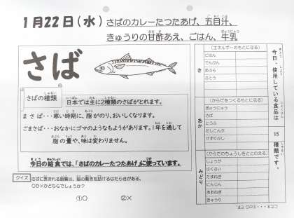 さばのカレーたつたあげは、2年に1度に登場する献立です。