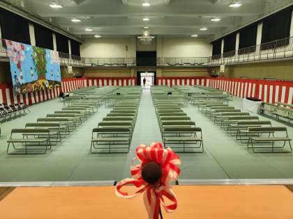 さて、お隣に目を移すと。コロナ禍ではお見えいただけなかった地域ご来賓の皆さんが、こうやって当たり前に卒業生を見送りに来てくださるようになりました。有り難いことです。本日はご多用のなか、ご臨席賜りましてありがとうございます。高いところからではございますが、厚く御礼申しあげます。