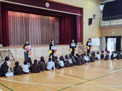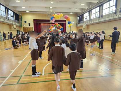教職員もそれぞれグループに分かれて自己紹介パフォーマンスをします