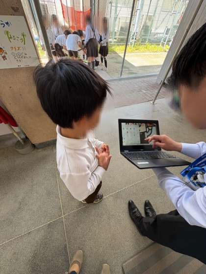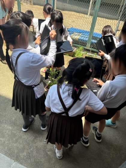 3年生は4時間目の理科の時間、アゲハチョウの幼虫の観察をしていました。「かわいい」「ずっと見とける」などと言いながらタブレットでも撮影しました。今日はICT支援員さんが来校されていたので、カメラが上手く起動しなかった子も見てもらって無事撮影できていました。
