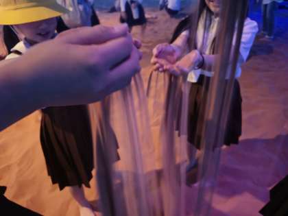 ヨルダンの砂漠から運んできた何十トンもの赤い砂
