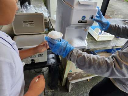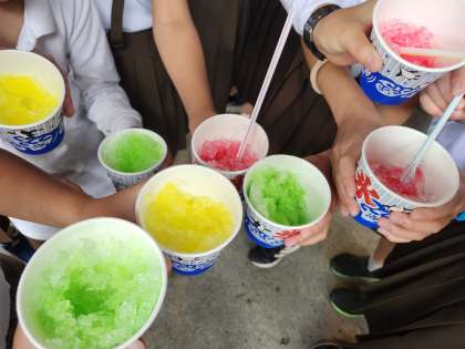 先生たちが作るかき氷をいただいて閉舎式を行いました
