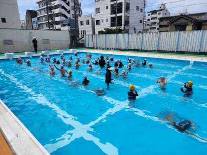 今日は、1年生にとって初めての小学校のプール!朝から青空が広がり、絶好のプール日和となりました。水の感触に大喜びの子どもたち。少しドキドキしながらも、笑顔いっぱいで水遊びを楽しんでいました。これからの水泳学習も、楽しく安全に取り組んでいきます!