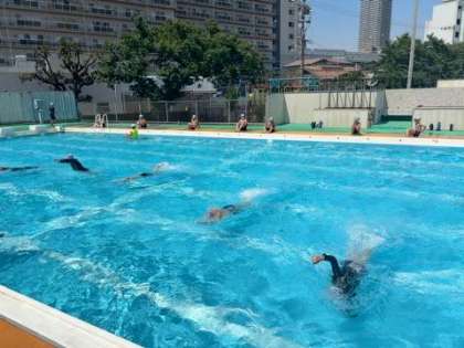 5年生 青空の下でクロール練習!