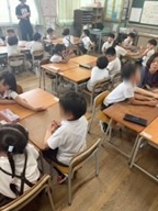 7月3日(木)、1年生が生活科の学習で「がっこうにいるひとと なかよくなろう」の授業を行いました。学校の中には、たくさんの先生や職員の方が働いていることを知り、子どもたちは「どんな仕事をしているんだろう?」「どんなことを聞いてみたいかな?」と興味津々。グループで相談しながら質問を考え、実際に先生方にインタビューする準備を進めました。友達と協力しながら学びを深めていく姿が印象的でした。