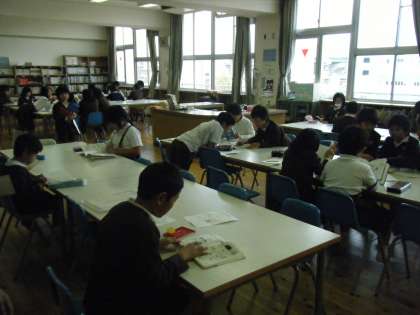 15分休みと昼休みの時間に図書室を開放し、自由読書で本に親しんだり、図書委員による紙芝居の読み聞かせをしたりしていますが、毎日多くの子どもたちで図書室があふれかえっています。