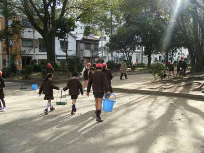 1月17日、磯路中央公園で1,5年生が「ふれあい清掃」を行いました。