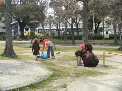 公園内には、たばこの吸い殻・空き缶・ペットボトルなどのゴミが多数ありました。子どもたちはお互いに協力しながら、寒さにも負けず、一生懸命清掃活動に取り組んでいました。