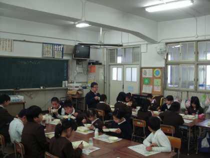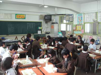他の学年と給食を食べるのは今年度初めてですが、高学年児童はお兄さん・お姉さんぶりを発揮し、ともに楽しく食事をしながら交流を深めることができました。