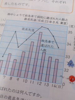 4年生は算数の時間です。折れ線グラフの学習をしていました。