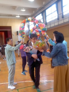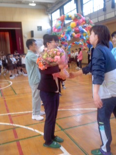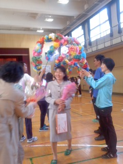 お別れはみんなで花道を作りました。離任された先生方、どうぞお元気で。