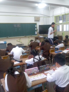 2年1組は国語の時間に新出漢字の練習をしています。2年2組は生活科で話し合い活動をしています。