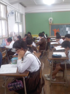 6年生は1時間目から全国学力・学習状況調査をしています。1時間目は国語と算数のA問題、2時間目は国語のB問題、3時間目は算数のB問題に取り組みました。午後からは児童質問紙に答えています。