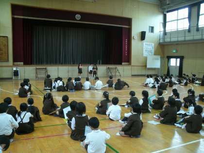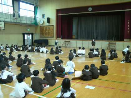 2時間目に2年生が1年生を案内しながら学校たんけんをしました。